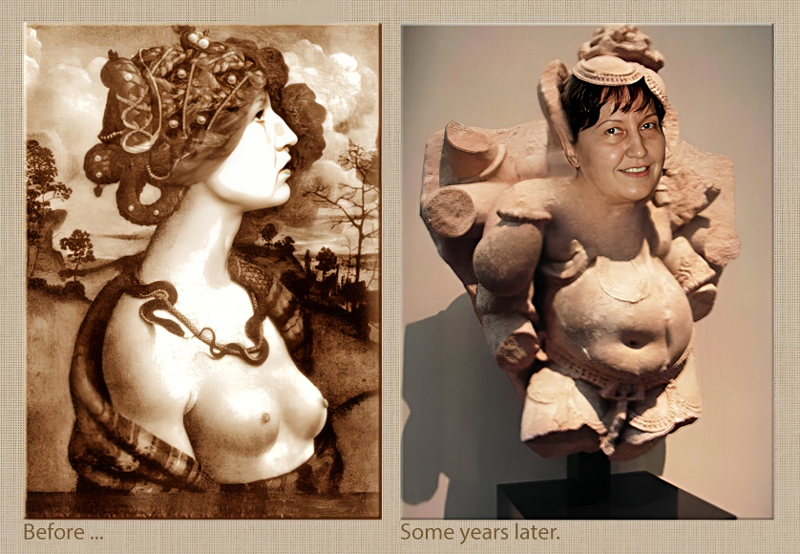 Sources: 1. Portrait of Simonetta Vespucci by Piero di Cosimo (1490) 2. Ganesha, 10th century sculpture, India